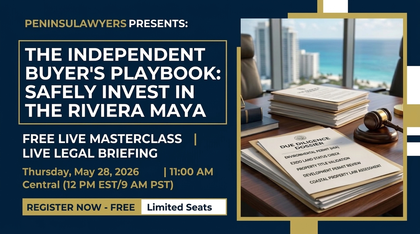 Do not go in unrepresented. Secure your seat for the free live masterclass to learn the exact legal frameworks needed to safely invest in the Riviera Maya. Register now to get your legal questions answered directly by an independent attorney during a 45-minute session with zero sales pitch from brokers.